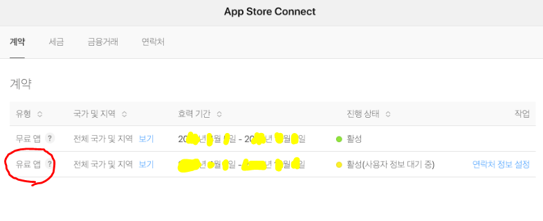 유료 앱에는 주소, 세금 관련(...?) 등 정확한 내용은 기억이 안나지만 여러 정보들 입력하면 애플에서 또 심사를 합니다.. 그놈의 심사..