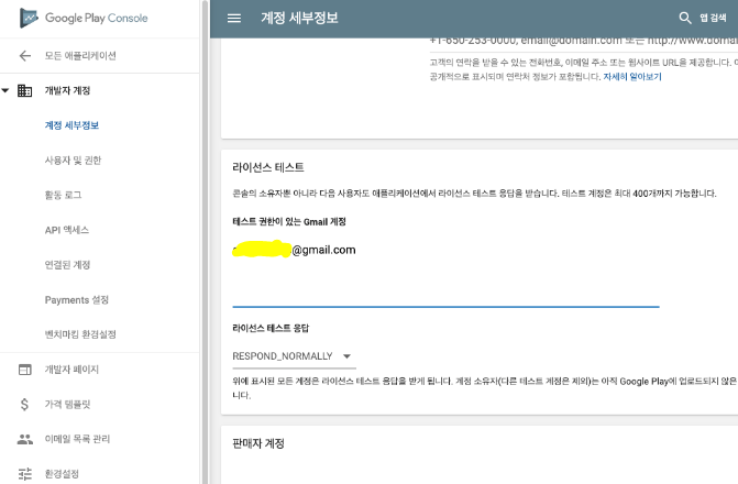 등록 후, 해당 play store 계정으로 구매버튼을 누르면 테스트 계정이라고 뜨며,