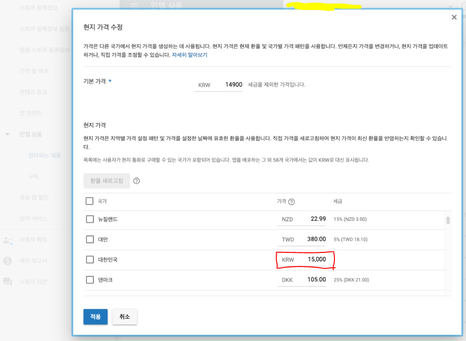 위 사진을 보면, 분명 가격을 KRW 14900이라고 입력했지만, 아래 빨간 부분을 보면 지들 멋대로 1000원 단위로 끊어버립니다. 만원 이하는 900원이 제대로 되는 것 같은데, 그 이상은 안되는 듯 싶습니다.(가물가물..)