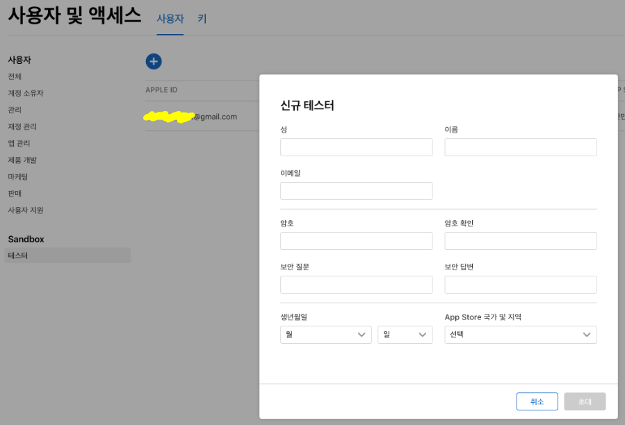 저기에 들어갈 이메일은 App store에 등록된 계정이 아니어야 됩니다!