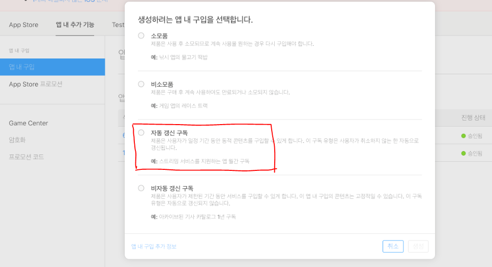 하지만.. 사실 위 그림처럼 나오려면 조건이 필요합니다.. 아무것도 안한했다면 빨간 박스의 자동 갱신 구독이 없습니다.