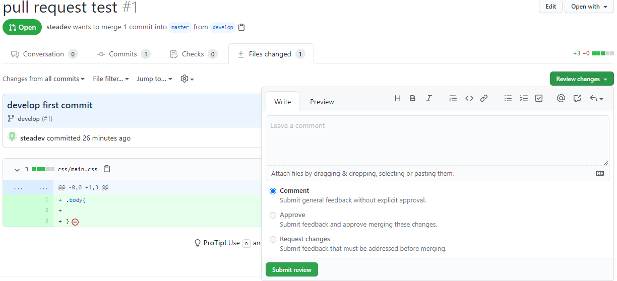 잘못된 부분이 있다면 이렇게 커멘트를 남겨서 다시 pull request 날릴수 있도록 할 수 있겠죠??