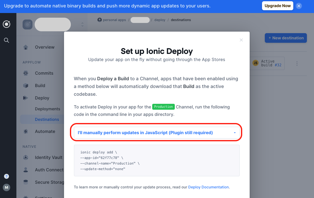 AppFlow 유료 버전을 사용하면 Native 빌드와 배포까지 할 수 있지만,