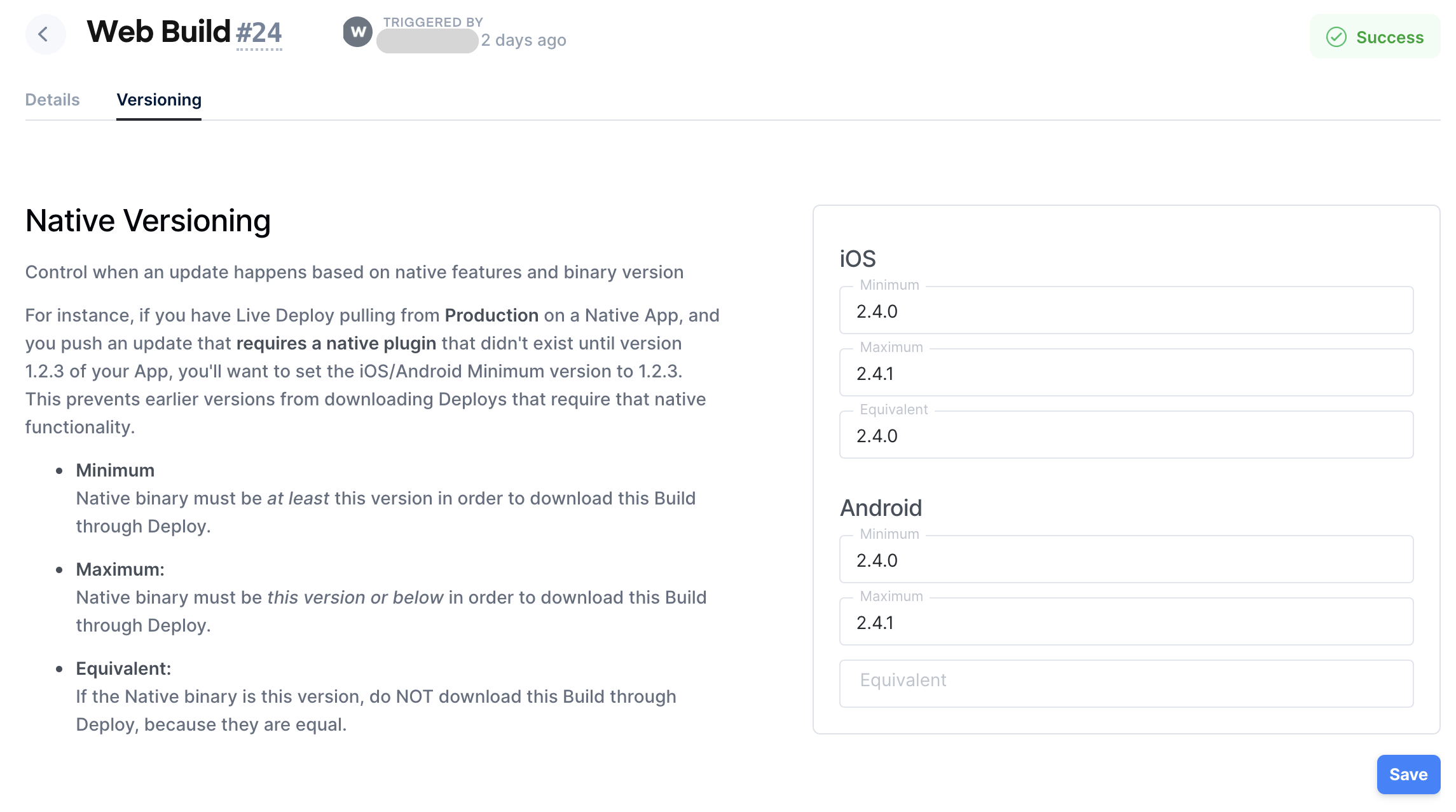 위 예시를 해결하자면, 1.0.0 버전의 웹 빌드의 max를 1.1.0으로 했다쳤을 때