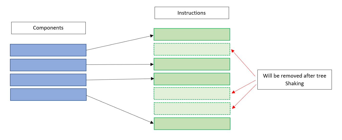 대신, 컴포넌트는 명령들을 참조한다. 사용되지 않는 명령들은 컴파일러단에서 생략이 가능! (so called - Tree Shaking) - virtual DOM은 인터프리터가 필요하고, 이는 실시간으로 동작하기 때문에 뭐가 필요한지 아닌지 알 수 없다. 때문에 모든 것을 브라우저에 보내야 한다.